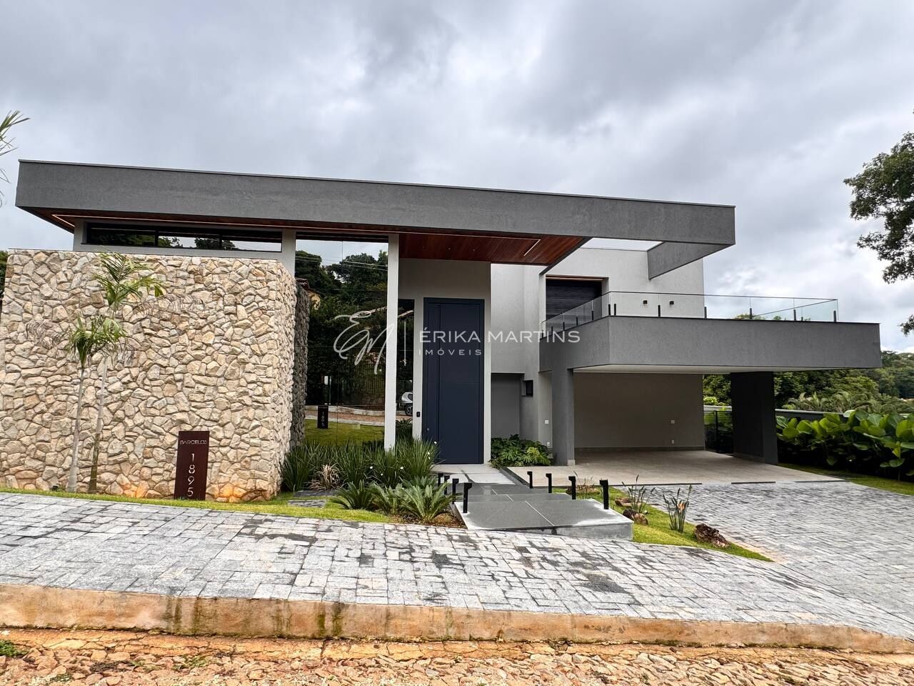 🏛 Fachada imponente com pele de vidro + porta pivotante de 5,10m